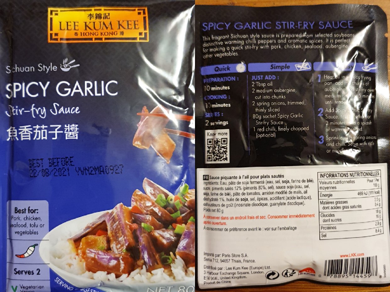 每包酱料背后都表明了需要的食材分量以及步骤。