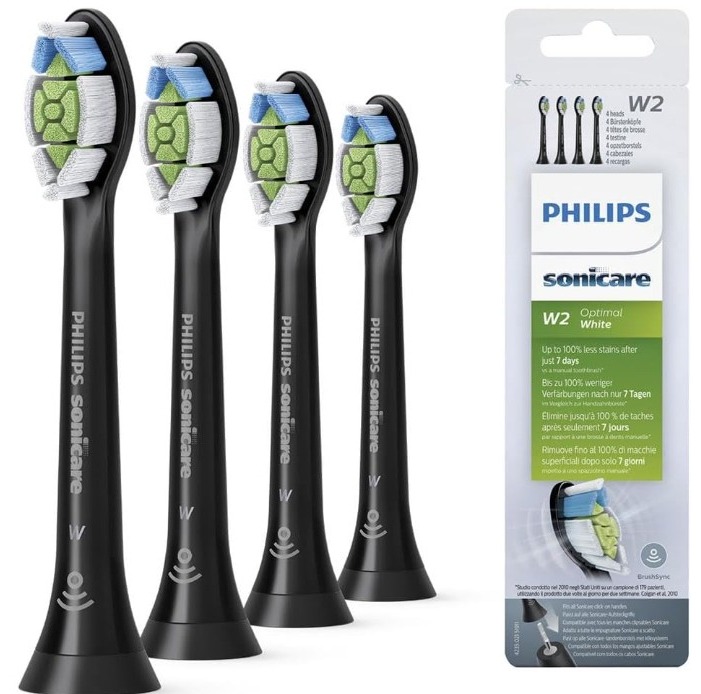 ✔包括4 个飞利浦 SONICARE W2 Optimal White 标准声波牙刷头