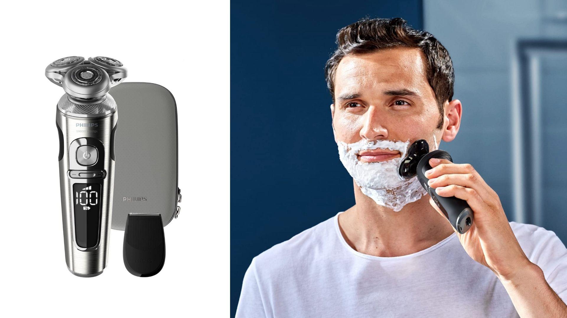 内含 9000 系列 Prestige SP9829/12 电动剃须刀、1 个储物箱、1 个 SmartClick 夹式精密修剪器配件、1 个清洁刷、1 个保护盖