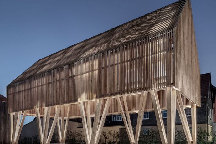 科堡大学团队利用弗兰肯森林的废弃木材建造展亭,将传统工艺与现代设计融合,突出资源再利用与环保理念。该项目不仅减少了环境负担,也展示了地方材料与建筑创新的无限可能。