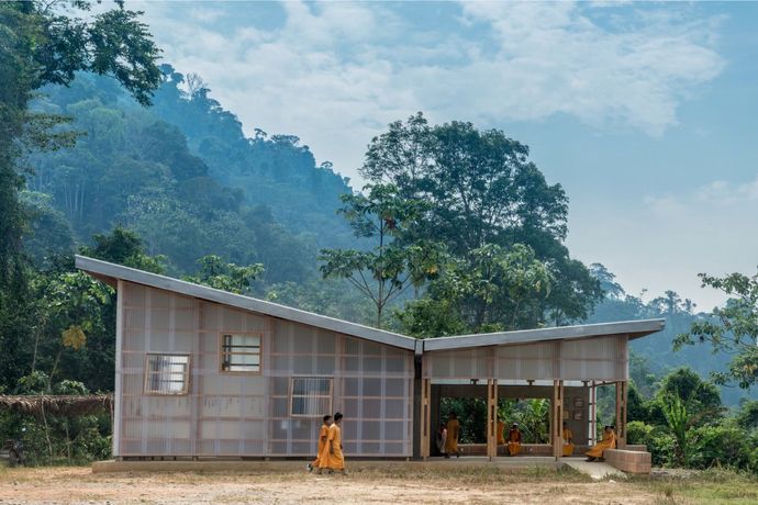 这件由秘鲁非营利组织Semillas与Forest Lab合作的项目,结合了建筑与教育,旨在通过参与式设计推动亚马逊社区的社会转型。作品展现了原住民智慧与可持续建筑的结合,强调人与自然的和谐共生,是“修复与再生”理念的生动实践。