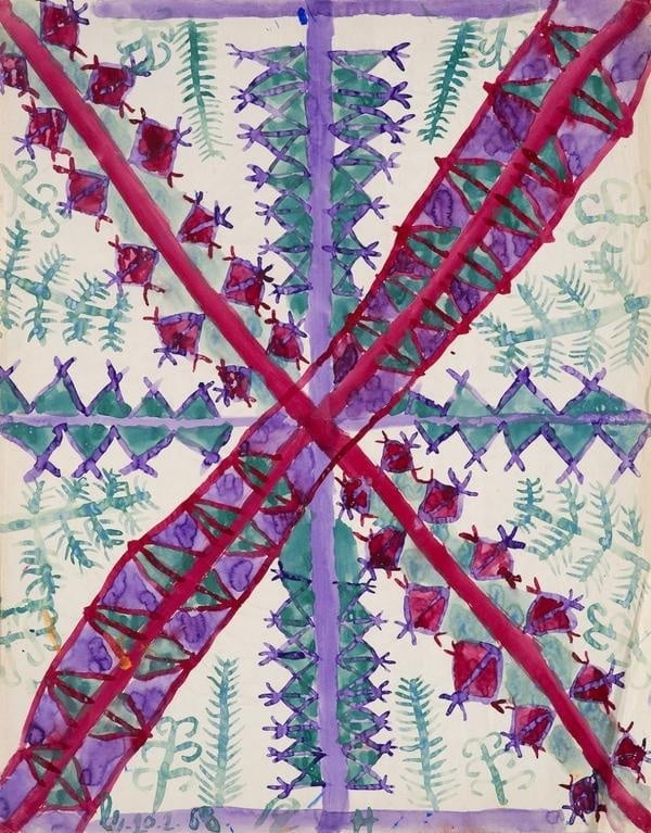 《Tenter l'art pour soigner》展览聚焦于20世纪60年代阿尔及利亚Blida-Joinville精神病院的艺术疗愈实验,首次公开展示该院社会疗法工作坊的珍贵档案、手绘陶瓷和大量患者创作的水粉画。这批作品源自2021年阿拉伯世界研究院(Institut du monde arabe)获得的珍贵捐赠,见证了精神病患者通过艺术表达自我、重建尊严的历程。展览特别致敬反殖民思想家兼精神科医生Frantz Fanon,他在1950年代开创性地引入文化与人文关怀,推动了医院由压抑走向疗愈与创造的转型。展览不仅是艺术史的补白,更是对艺术疗愈、社会包容与文化身份的深刻反思。