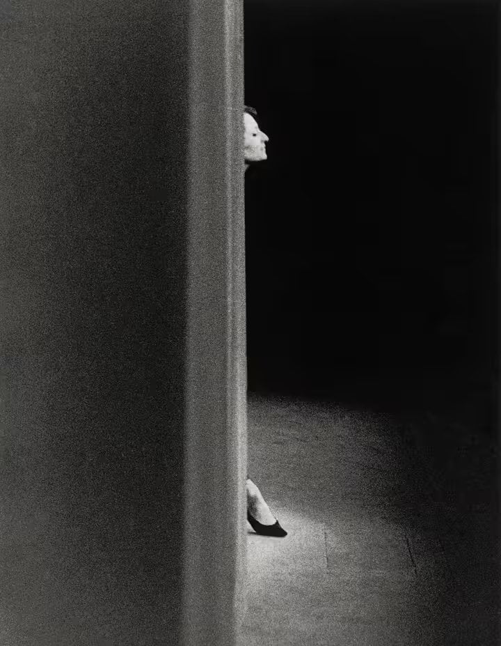 马塞尔·伊姆桑德《Barbara derrière un rideau de scène》(幕后的芭芭拉),黑白银盐照片