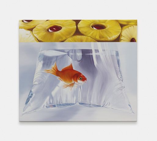《Tychon》以柔和写实的笔触描绘甜品与自然物象的并置,画面中甜点的细节与花朵、果实等元素相互呼应,既有感官诱惑,也蕴含对女性身体与生育的隐喻。作品名称取自希腊神话中的幸运之神,呼应展览对生命与创造力的致敬。