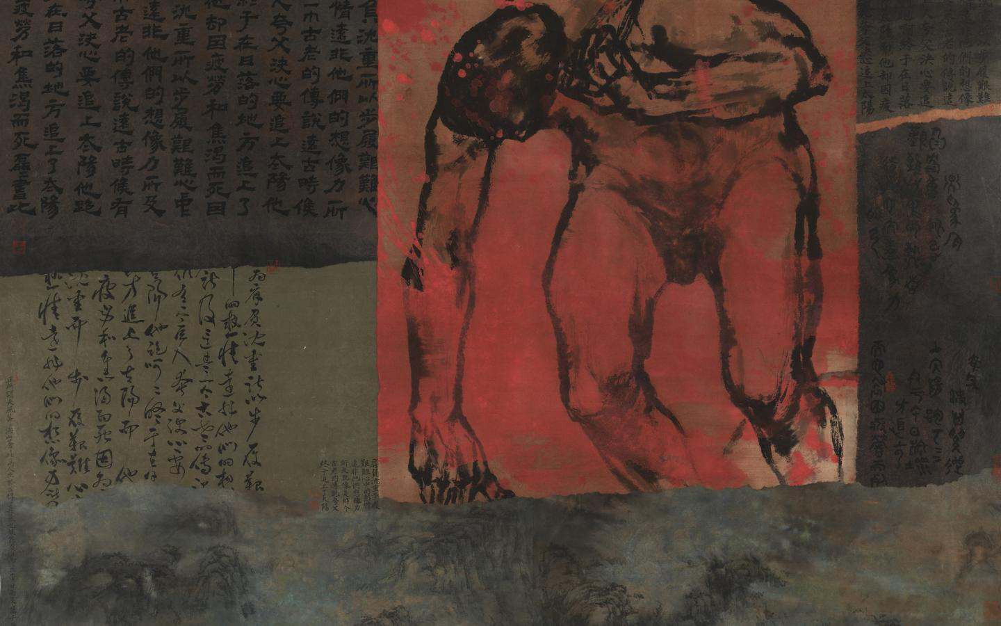 曲磊磊将中国水墨的意境与西方光影技法融合,描绘神话故事“夸父追日”。作品中水墨晕染与金石拓印的结合,既保留东方美学,又展现个人独特风格,是中西艺术交融的典范。
