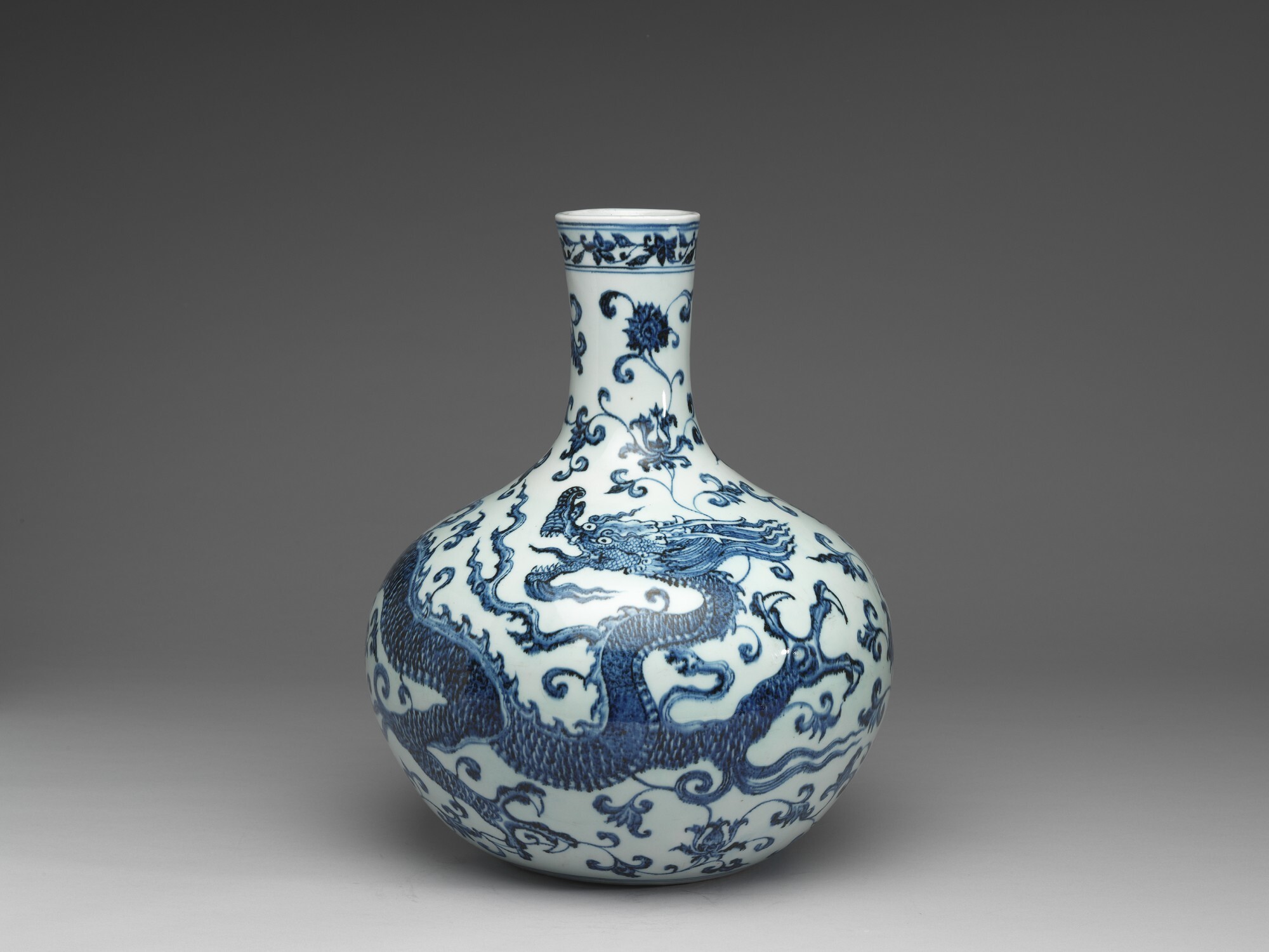 青花穿莲龙纹天球瓶(明永乐,15世纪)