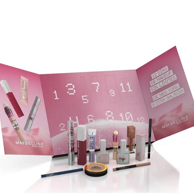 作为常年占据彩妆销量榜的开架品牌,美宝莲圣诞日历每一格都是日常能高频上脸的彩妆单品,买回家完全不用担心闲置落灰。他家的经典王牌有睫毛膏、粉底色号覆盖日常通勤到节日派对的口红,全是不用做功课、拆开就能直接用的“省心款”。