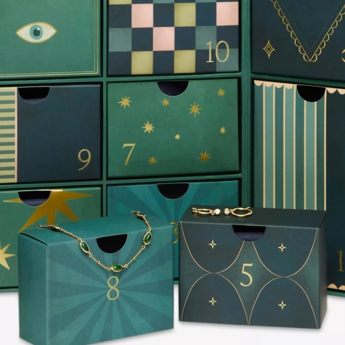 MISSOMA这款圣诞日历不同于常规美妆礼盒,它全是blingbling的黄金珠宝,光是金色主色调的包装就透着高级感,拆开的每一步都像在解锁专属珠宝惊喜。里面不仅有他家标志性的叠戴锁骨链、百搭戒指,还有3款圣诞限定设计,比如可能带细巧纹路的吊坠或简约耳圈,通勤叠戴显精致,圣诞派对搭礼服也不违和。而且每件都独立包装,不管是送自己当 “年度奖励”,还是送爱美的朋友,都能让人感受到 “花小钱享轻奢” 的快乐。