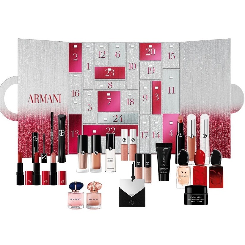 阿玛尼今年真的是把它家三大拳头产品线全打包拉进一个倒数日历里,包含香水、彩妆与护肤,My Way 香水、Eye Pencil、Crema Nera眼霜、Lip Power、Vertigo Lift睫毛膏等许多阿玛尼家的明星单品。既可以补妆也可以护肤,一盒搞定三种需求,真的是非常适合想要尝试Armani全线又不想分几款来买的朋友。