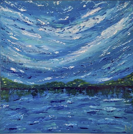 这幅作品以流动的色彩和抽象的笔触,表现风中飘扬的意象,展现了艺术家对自然与情感的敏锐捕捉。作品与展览主题“遇见艺术家”呼应,强调个人表达与观众共鸣。