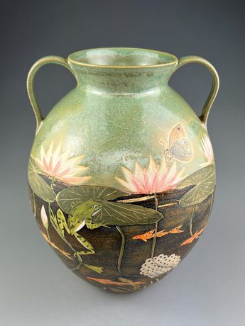 这件作品以精致的造型和釉色变化著称,展现了Miae Kim对材料的敏锐感知。其有机流动的线条呼应展览对陶瓷多样表达的追求,是London Potters Members展的代表作之一。