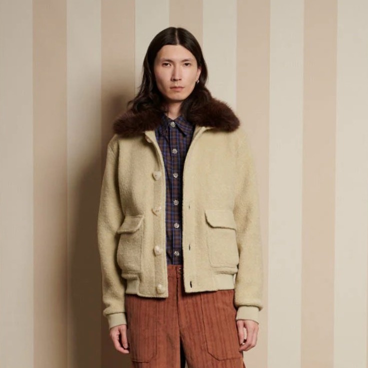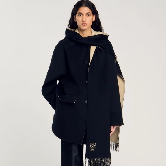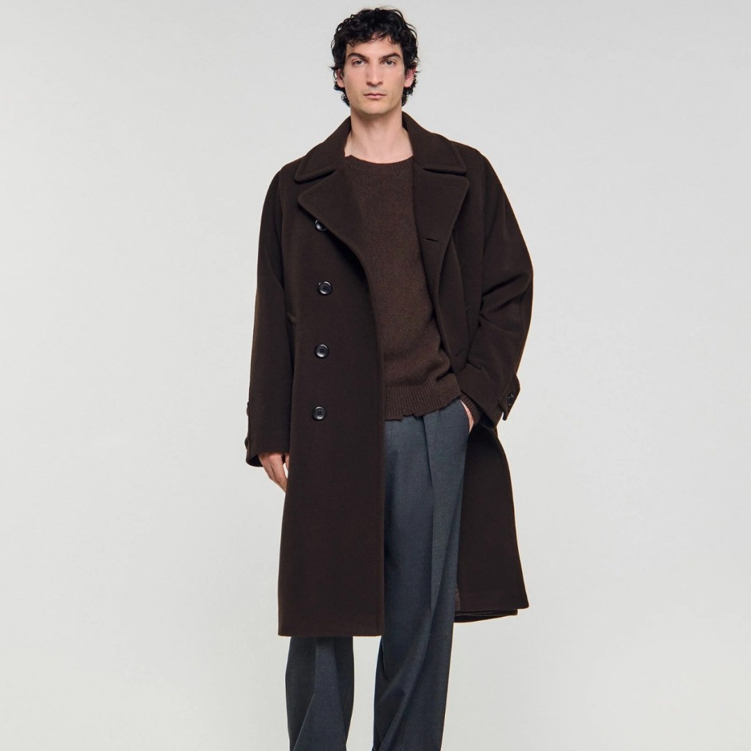 和Maje同属一个集团的Sandro则风格更偏中性化,注重个性化和现代感,常常融入拼接、纽扣或独特的图案设计,细节感满满。虽然价格不算便宜,但Sandro的大衣能轻松打造出法式随性又时髦的气质。