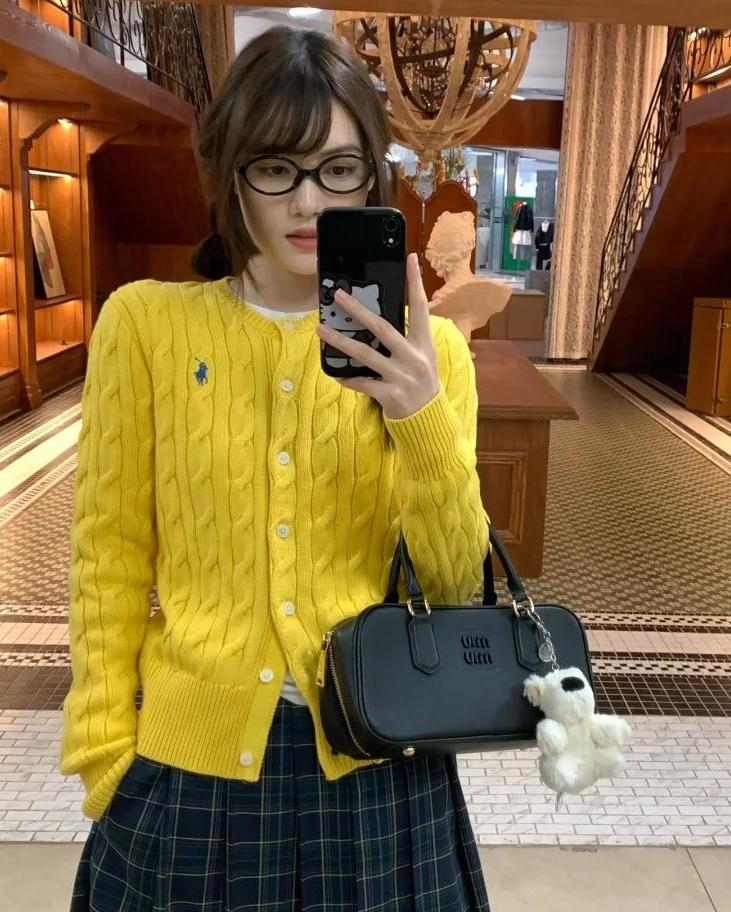 秋冬天里的一抹亮!清新夺目!麻花开衫,质地柔软亲肤,纯棉材质很好打理,经典圆领贴合脖颈却不束缚,悄悄修饰线条,气质大方又耐看。最适合春秋穿,韩里韩气的,浓浓的老钱气质散发出来,真的很米~