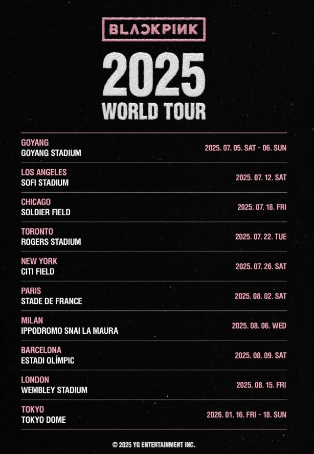 BLACKPINK 2025年世界巡演终于来了!这是自2023年她们在欧洲体育场演出以来的再次亮相,相信她们会带来更炫酷的舞台效果和全新的曲目,完全不容错过!门票已经于3月3日正式开售,如果你是BLINK会员,还能优先购买呢。所以,赶快准备好抢票吧,巴黎的宝子们,这次不见不散!