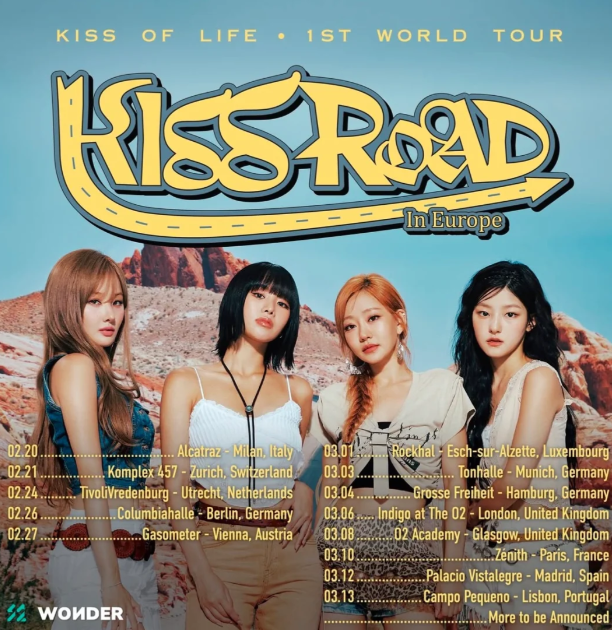 人气 Kpop 女团 KISS OF LIFE 官宣啦!2025 年她们要带着《Kiss Road》世界巡回演唱会来欧洲咯!她们的《Sticky》《Shhh》《Get Loud》超好听,相信很多人都听过。这个团 2023 年出道,成员有 JULIE、NATTY、BELLE、HANEUL,风格热辣性感,舞台超有魅力,一起期待她们的欧洲之旅吧!