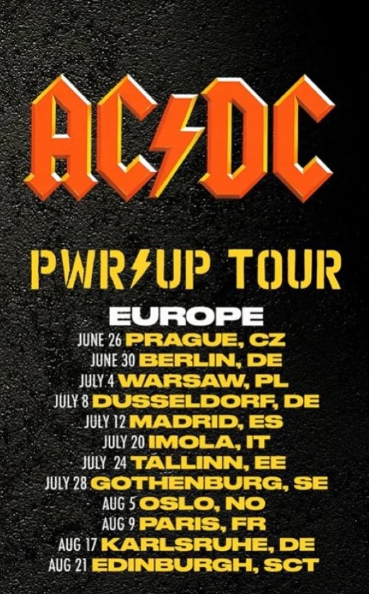 AC/DC 2025年欧洲巡演要来了!巴黎的朋友们可以在8月9日和13日两场在法兰西体育场嗨翻天。原本的首场演唱会已经卖光票了,所以乐队决定加开第二场,真是太贴心了!这次巡演是AC/DC自2015年以来的又一次大回归,带着他们那标志性的摇滚风格和震撼的现场,肯定又会让所有摇滚迷尖叫。想要亲临现场感受摇滚经典的力量的小伙伴们,赶紧准备好你的票,别错过这个机会!