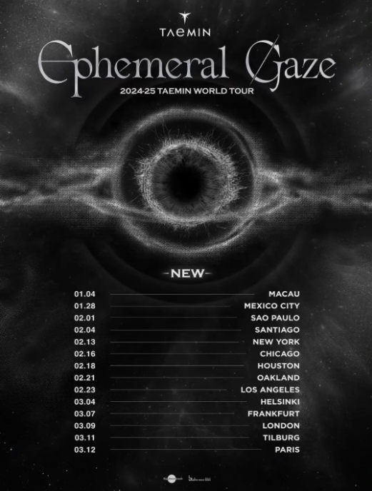 K-Pop迷们注意啦!李泰民(Lee Taemin),世界巡演《Ephemeral Gaze》法国站将在巴黎举行!这次巡演无疑是给所有K-Pop爱好者的一份大礼,准备好跟随泰民的脚步,一起沉浸在他迷人的音乐和舞台魅力中吧!