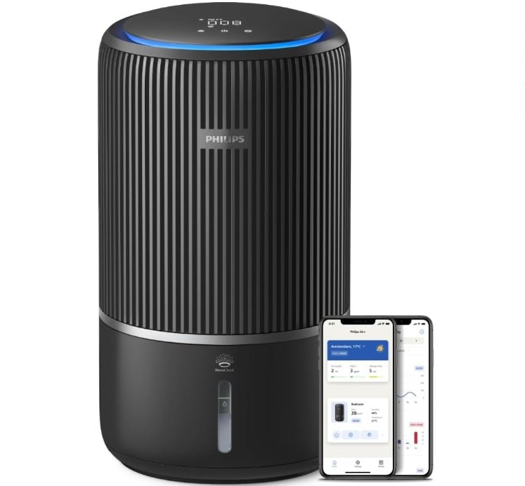Philips 3400系列二合一加湿器它不仅能加湿,还能净化空气,适合最大约78平方米的空间,释放的湿雾细腻又健康,减少细菌传播,告别白色粉末困扰。水箱容量3.2升,一次加满能用15小时。三层HEPA过滤系统捕捉99.97%的微小颗粒,让空气清新干净。支持睡眠模式,运行噪音低至16.5分贝,晚上开着也不会打扰休息,还能通过Philips Air+ APP、Google Assistant或Alexa远程控制,轻松调节湿度和空气质量。放在卧室或客厅,一开机就像给房间加了“柔软滤镜”,呼吸都舒服多了,干燥、灰尘问题瞬间搞定!