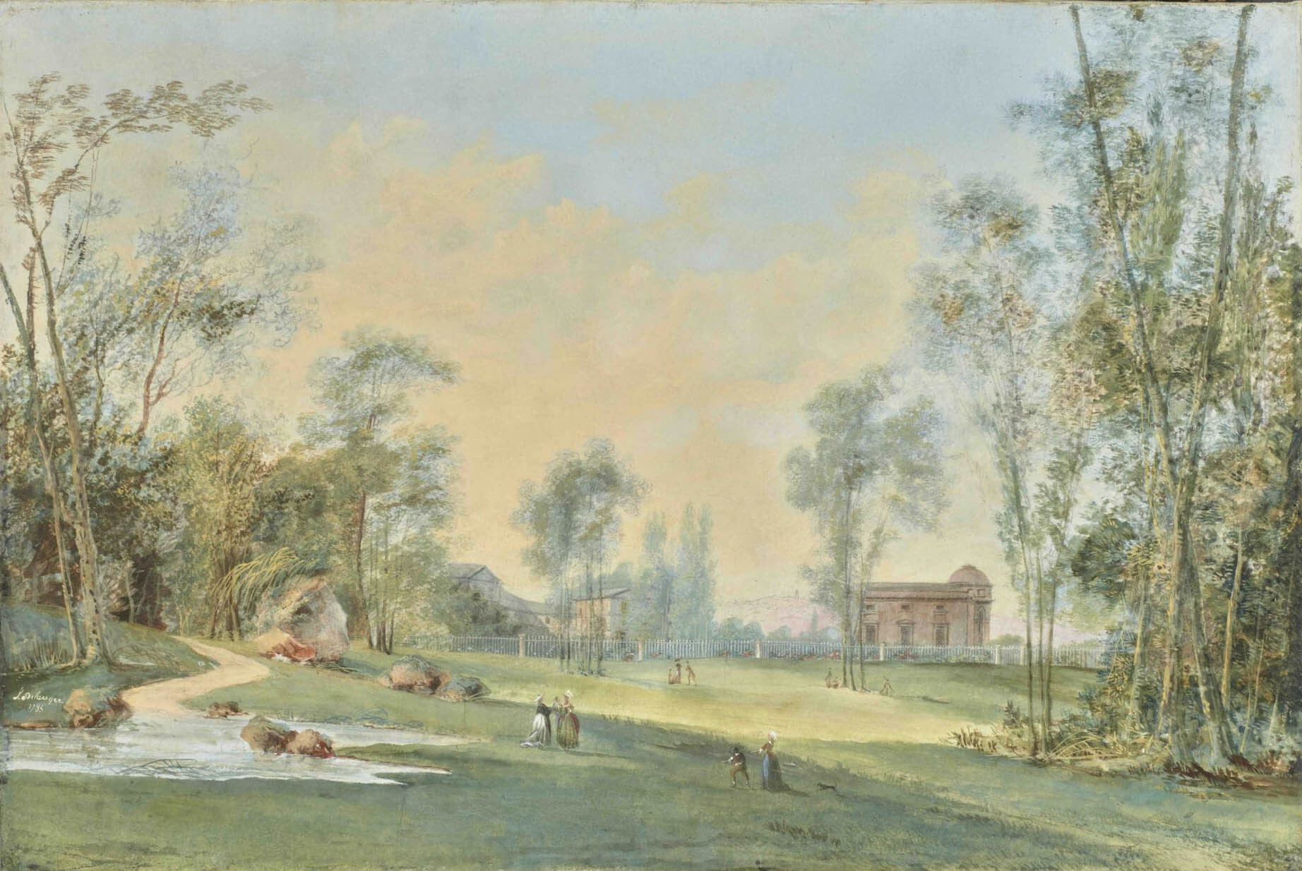 《巴加泰尔花园边》(Les abords du pavillon de Bagatelle),Louis Belanger,1785年