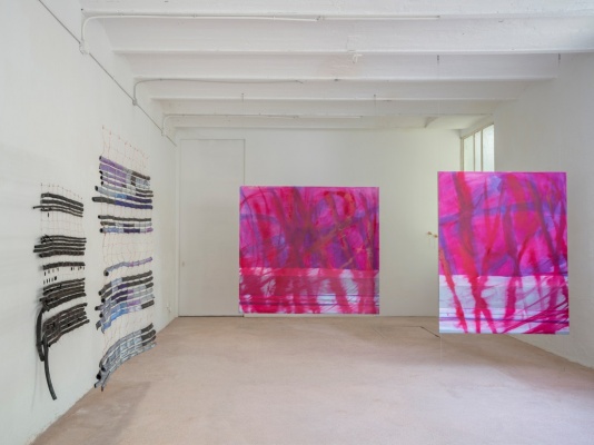 《Dialogue sur fils de cuivre》(铜线上的对话)是Marie Hazard与Augusta Lardy Micheli首次在Belmonte画廊的联袂展出。两位艺术家以各自独特的纺织与材料实验展开对话,通过铜线、橡胶、纸张、聚酯和亚麻等多样媒介,探索友谊、工艺传统与材料语言。展览不仅展现了她们对材料的敏锐感知,还通过对比与融合,呈现出自然与机械、时间与图像之间的微妙关系。Augusta Lardy Micheli(瑞士,1994)现居巴黎,擅长探讨感知与图像的哲学层面;Marie Hazard(法国,1994)则以传统与现代纺织工艺结合见长,创造出独特的视觉语言。