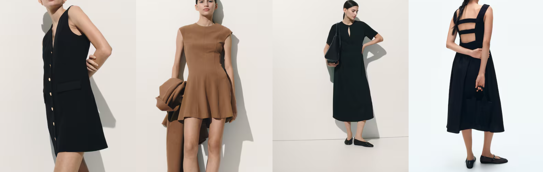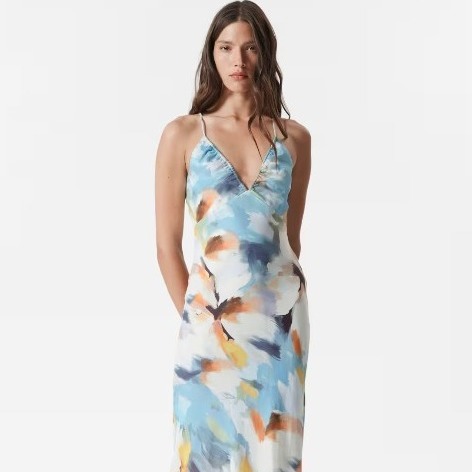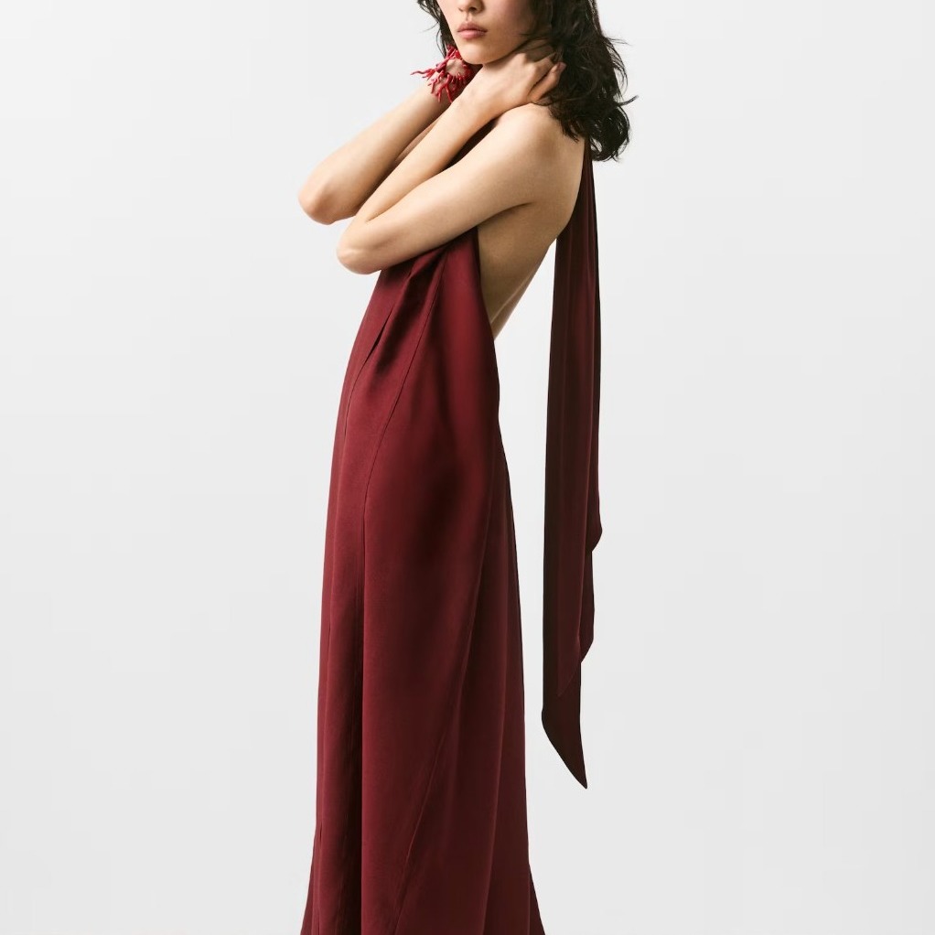 Mango派对礼服偏现代摩登风,喜欢简约又高级感的可以看它家。它家剪裁干净利落的西装裙连衣裙和飘逸面料的礼服,穿上去显气质又舒适。颜色上大多稳重经典,适合各种场合,让你派对造型轻松又不失优雅。