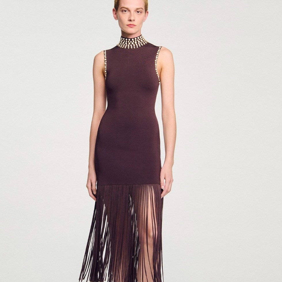 Long fringed knit dress