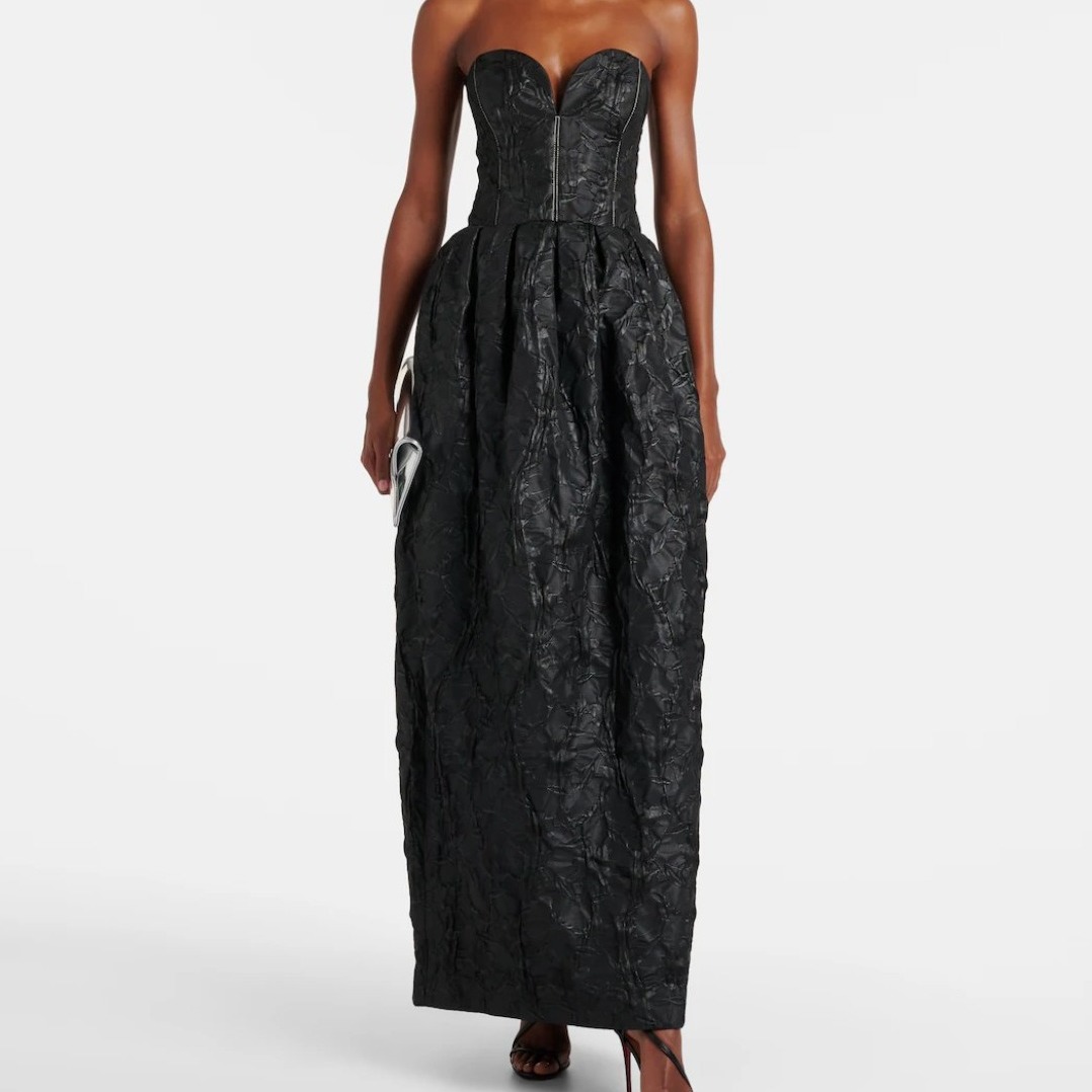 Long ruched jacquard silk dress