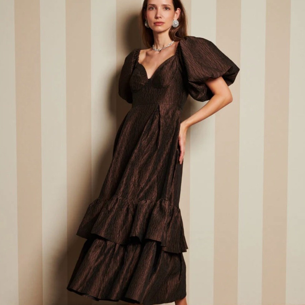 谁能拒绝Sister Jane那种梦幻复古风!它家的泡泡袖、荷叶边和复古印花特别适合小仙女派对Look,仿佛把“伦敦少女”直接搬进了派对现场。虽然款式偏少女风,但只要搭配合适,哪怕圣诞宴上也不突兀。小编私心推荐他们家金线刺绣短裙套装,照片拍出来闪闪发亮,美到不真实。
