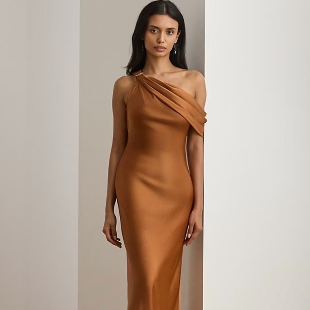 One-Shoulder Satin Midi Dress