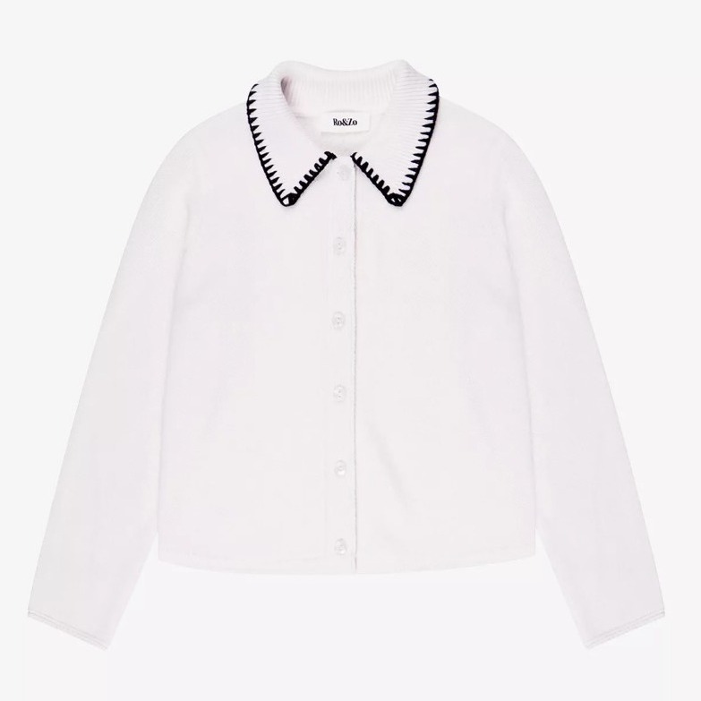 RO&ZO Contrast-Stitch Collared Knitted Cardigan