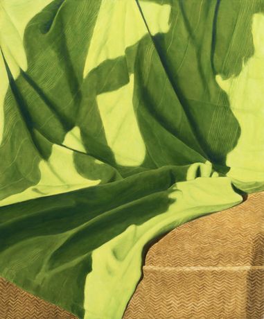 本作以静谧的影子形象,表达了女性在社会中常常被要求保持沉默的处境。Allen通过细腻的笔触和织物背景,赋予作品温柔而坚韧的力量,强调接纳自我脆弱的重要性。