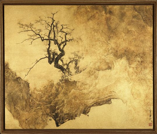 李华弌《金银上的树与山》:中西融合的当代山水新境界