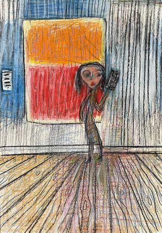这幅作品以彩色铅笔在纸上创作,幽默地反映了当代艺术的流行现象。Collings用简洁明快的线条和色彩,将艺术史与流行文化并置,呼应展览对“艺术作为商品”现象的批判。