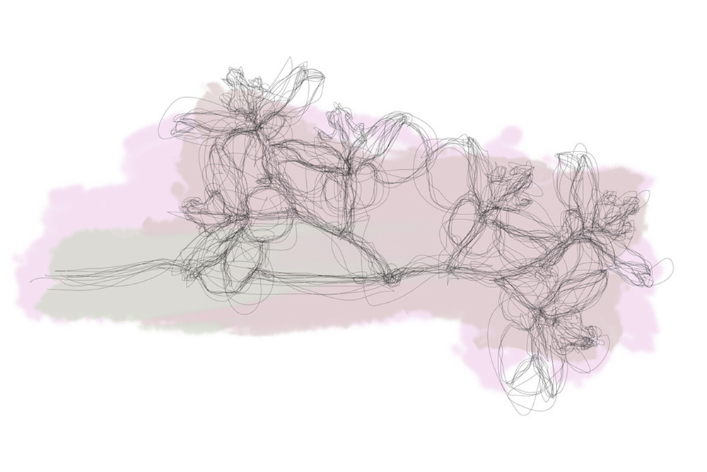 佩桑以眼动追踪记录自己凝视兰花枝的过程,机械臂将这些数据实时转化为纸上线条。作品既是科学实验的产物,也是对自然美的诗意再现,展现了“观看”本身的艺术性。