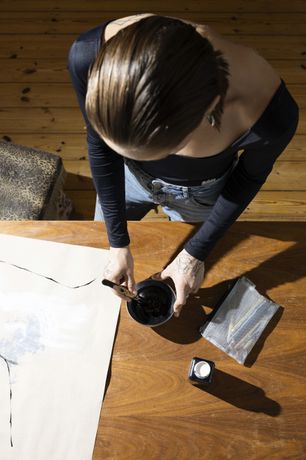 Burkhardt以其纹身和部落传统为灵感,结合历史与日常元素,创作出极具辨识度的视觉语言。此作通过动态的人体形象,探讨自我在社会结构中的“坠落”与抗争,体现了展览对“下坠”多重意义的探索。