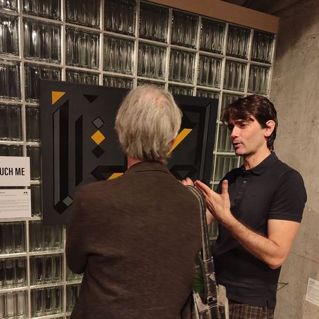 该系列作品将抽象几何绘画转化为可触摸的声音空间。观众通过触摸画布,激发由神经网络分析生成的音乐,形成视觉与听觉的多感官互动。作品鼓励观众用身体去“聆听”与“感受”艺术,突破传统的观展方式。
