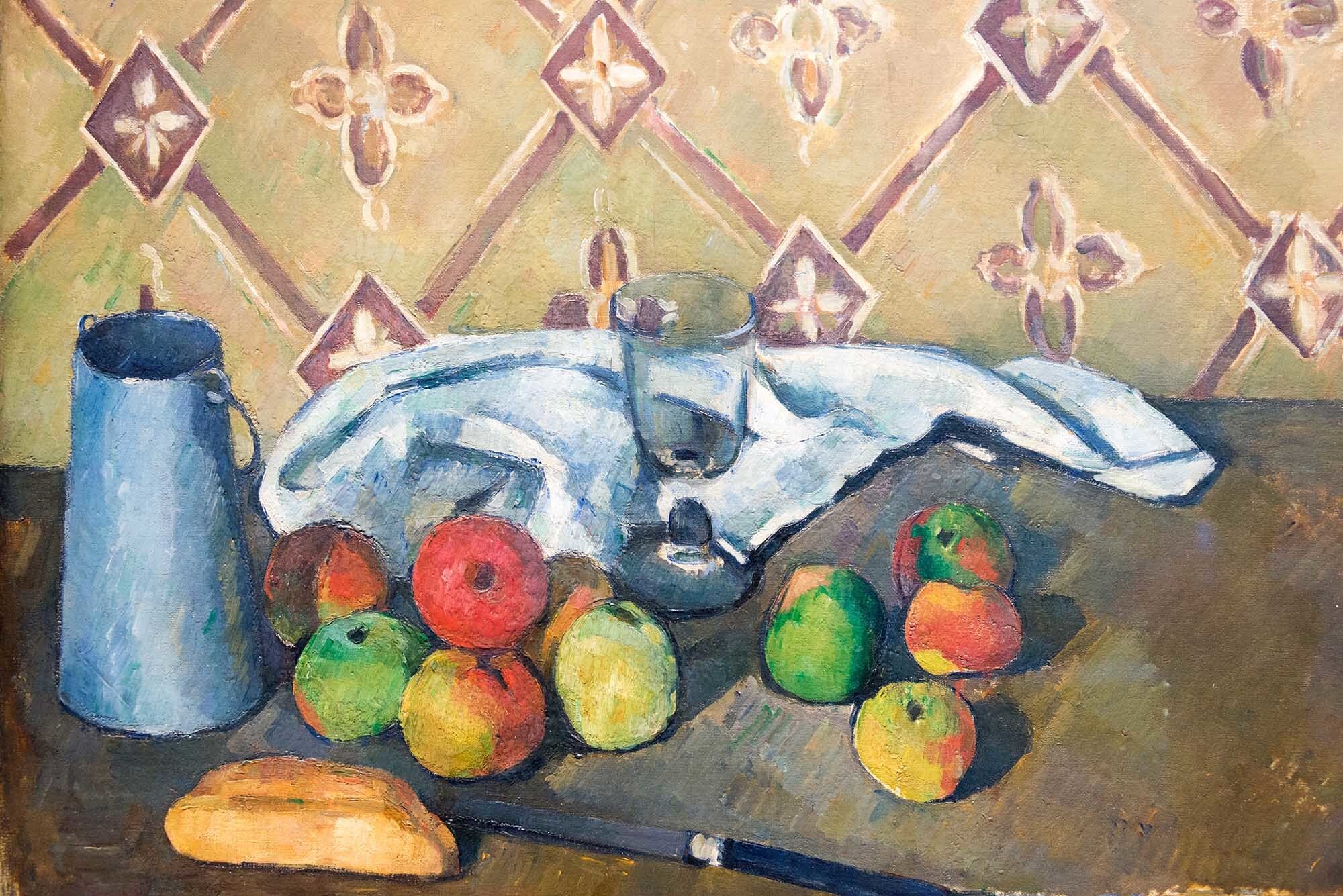 《水果、餐巾和牛奶壶》(Fruits, serviette et boîte à lait),保罗·塞尚,约1880年