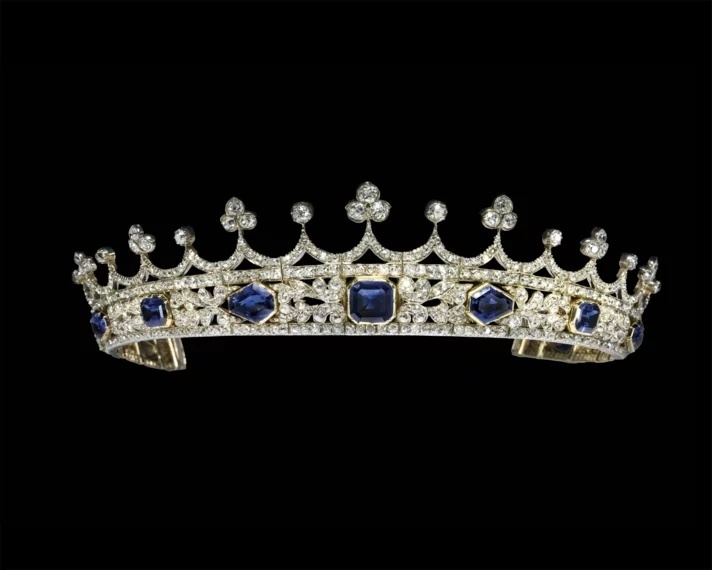 由Prince Albert设计、Joseph Kitching制作,这顶冠冕以蓝宝石、钻石、黄金和白银打造,是维多利亚女王的标志性珠宝之一,象征着英国皇室的权力与爱情。其精致工艺和历史意义,使其成为展览的焦点之一。