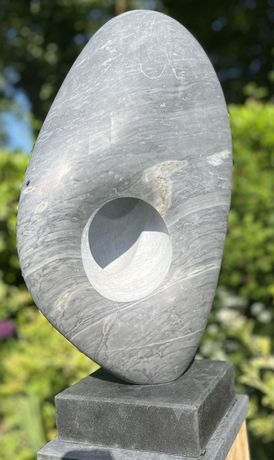 这件作品以蓝色拉布拉多石为材质,展现了艺术家对负空间、光影与流动感的探索。雕塑表面处理精细,线条自由,体现Stonestreet自由手工雕刻的风格。