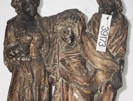 这幅15世纪的宗教画作,描绘圣母玛利亚在圣约翰与抹大拉的玛利亚的陪伴下的场景,原始出处已不可考。作品由SDPAN于西班牙内战期间收集,现作为展览的代表展品之一,体现了战乱时期艺术品流转的复杂历史,也反映了宗教艺术在西班牙文化中的重要地位。