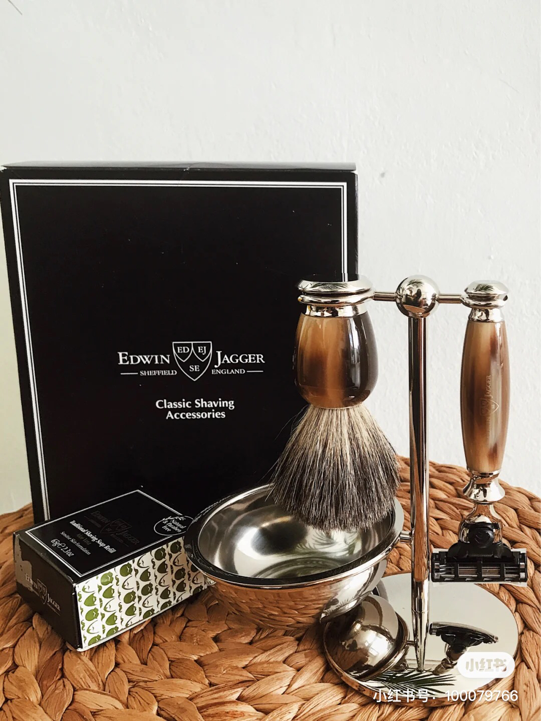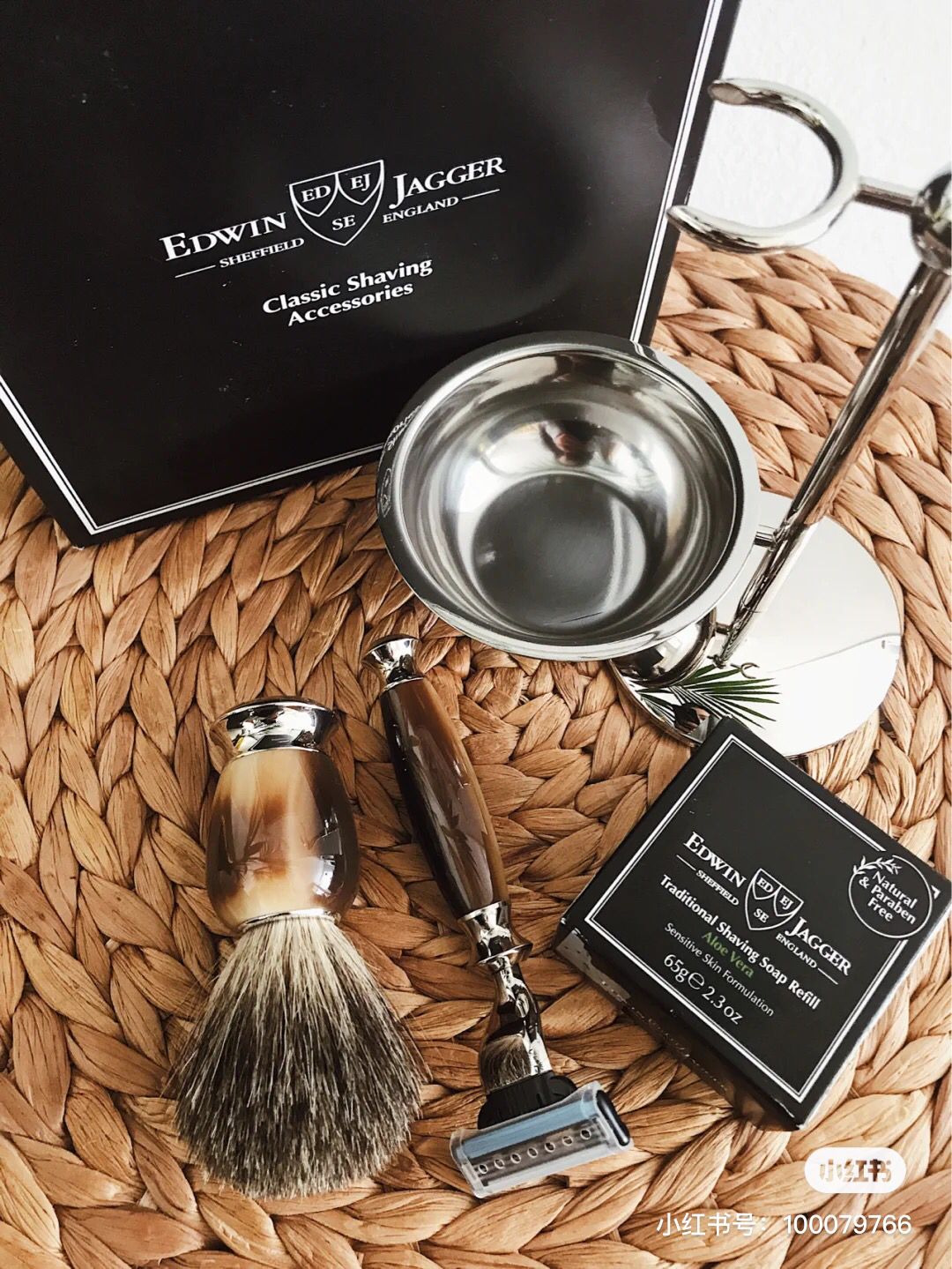 🧔🏻男友每天都要精修胡型,所以专注手动湿剃。一直想送他一套Truefitt&hill,因为时间来不及就买了备选同样来自英国的谢菲尔德老牌手工剃须刀Edwin Jagger。