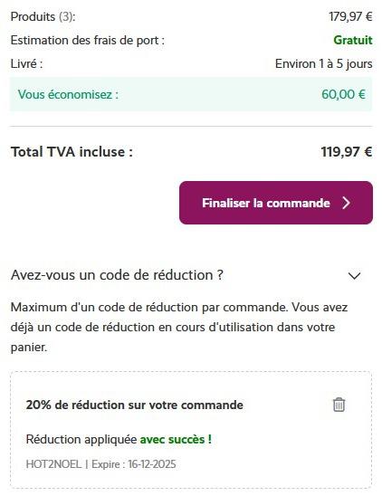 💋用码HOT2NOEL即享满80欧9折、满100欧85折、满120欧8折优惠!