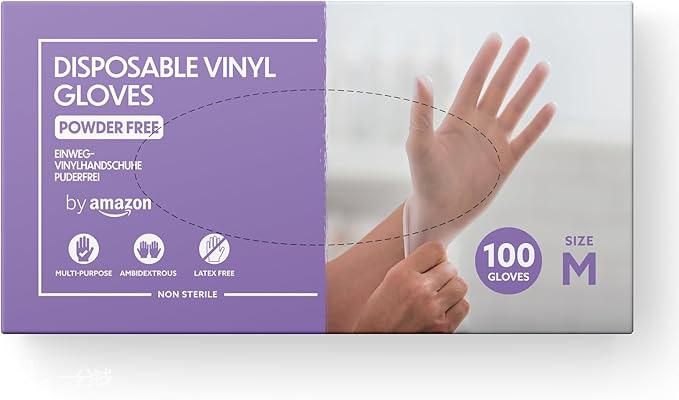 👉 亚马逊自有品牌一次性乙烯基手套中号 100 只装,透明轻薄贴合手部,日常防护、清洁、餐饮多场景轻松适配!