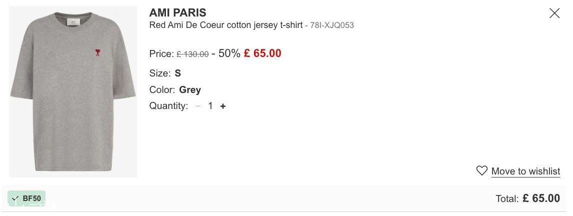 Luisaviaroma 上AMI 无星标黑五直接6折! 折扣码:BF50
