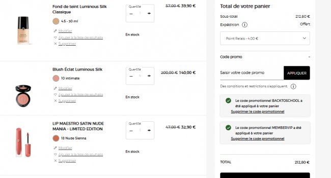 2️⃣ 先输入折后满90€送礼码:MEMBERVIP