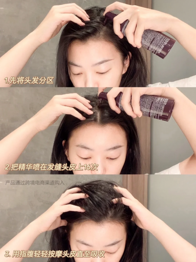 ✨使用方法:扒拉开发缝喷在头皮上,分区多扒几次,喷完用手指或者气垫按摩梳按摩头皮帮助吸收~