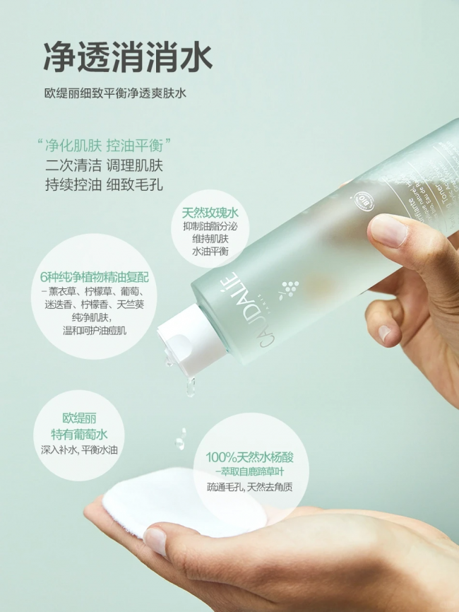 step 2——“净透消消水” 欧缇丽细致平衡净透爽肤水 二次清洁 细致毛孔!