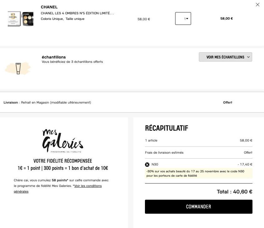 老佛爷家香奶奶全场7折收!香奈儿5号限定眼影盘40欧收!小🍠上永不退热度的268、308这里都有!