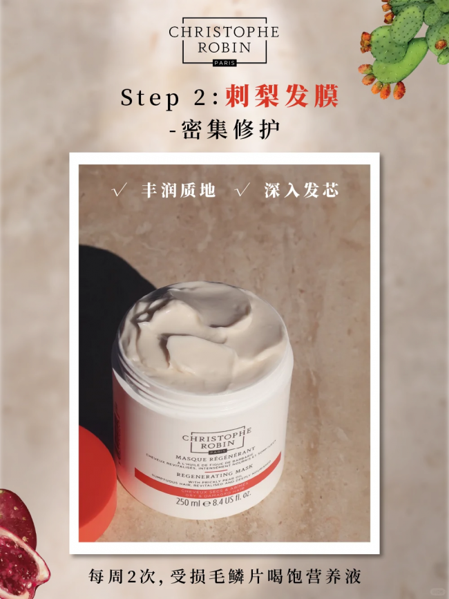 Step2️⃣:刺梨发膜-密集修护 “双皮奶”同款丰润质地,包裹发丝深入发芯 相当于头发的“修复面膜” 每周2次,抚平毛躁分叉,让秀发丝丝顺滑如“瀑布”