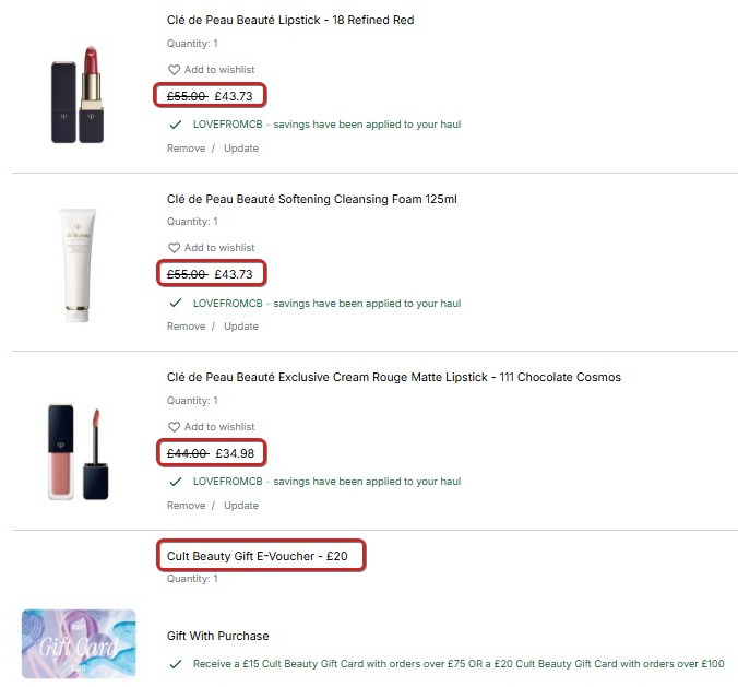 ⚠️ 单品价格计算方法:折后未满£100的单品按照(礼品卡折上8折)计算,折后满£100的单品按照(-£20)计算!